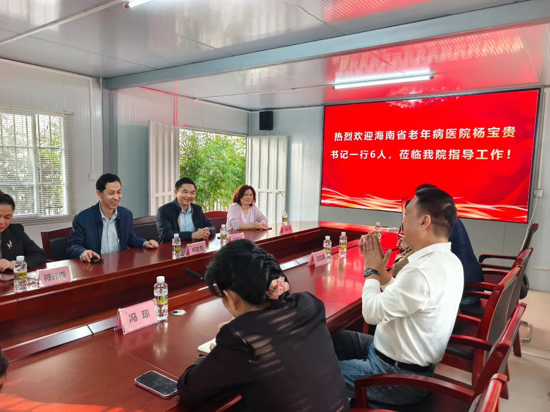12月20日,海南省老年病医院杨宝贵书记、梁培日副院长、符秀梅党委委员等一行6人莅临海口安护康医院参观指导。双方怀揣对医康养事业融合探索的热忱,共谋深入合作,期待为创新发展开启新篇章。