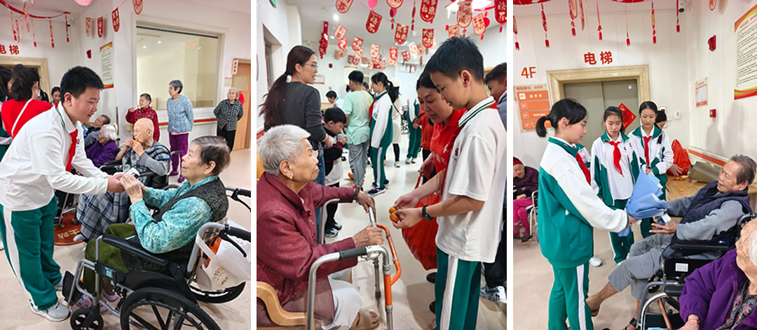 活动接近尾声,学生们为老人们送上精心准备的爱心礼物。这些礼物或许并不昂贵,但每一件都饱含着学生们的心意。有的是亲手制作的鲜花贺卡,上面写满了真挚的祝福;有的是自己挑选的牛奶水果,他们体贴的喂给老人们。老人们接过礼物,眼中满是感动,他们紧紧握着学生们的手,不停地说着感谢的话语。