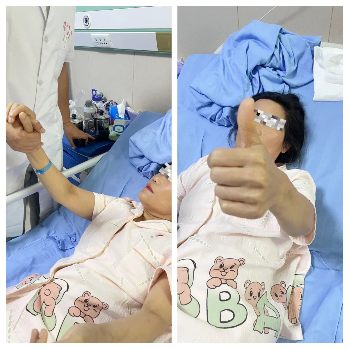 经过 14 天的持续努力,奇迹发生了。许女士能够端起水杯,顺利喝水,且未出现呛咳。这一转变,标志着她从依赖鼻饲管,迈向了自主进食,如今已经顺利出院。这 14 天的成果,是安护康康复团队专业与努力的见证,也离不开许女士的积极配合。同时患者的肢体运动功能也在进步中。